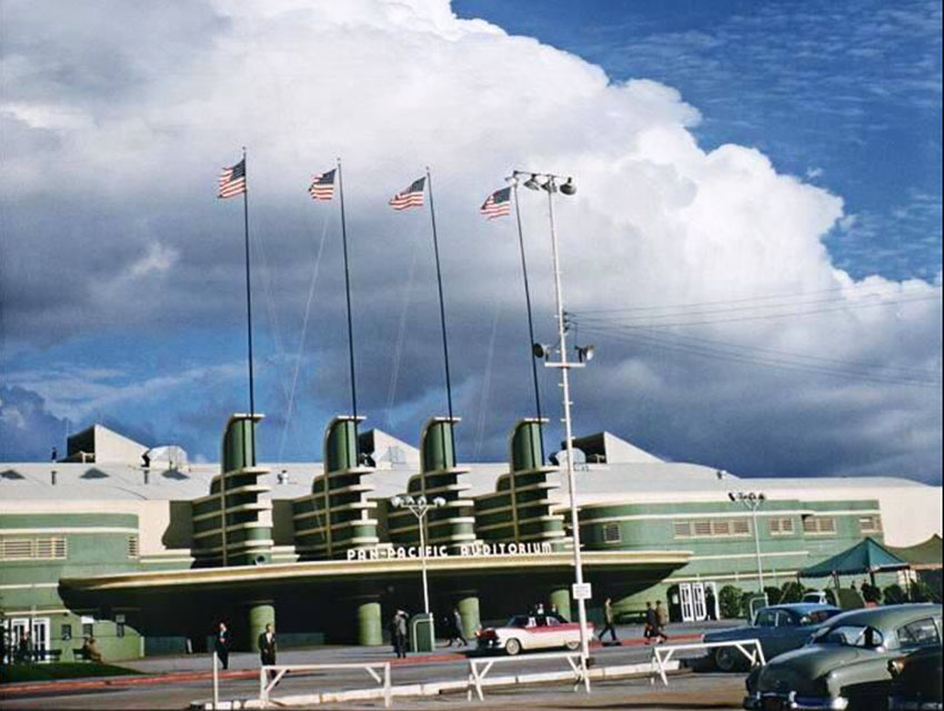 Upon removing herself from the boardwalk mural, Kira roller skates up the city’s coast from Venice Beach to Zuma Beach, on a muse mission to bring the young idealistic man and the older seasoned music industry professional together. Both are disgruntled by the industry for different reasons, yet share an unyielding passion for music and creativity. Kira leads them to the once illustrious, but now decaying architectural icon, the Pan Pacific Auditorium. Once Kira has lured the two men to meet in the venue, she recites Samuel Taylor Coleridge’s 1797 poem about Xanadu. Magic ensues, and in the final scene, Kubla Khan’s empirical palace built in 1256 China, is reborn as roller-disco-meets-big-band-nightclub in the Los Angeles Inland Empire.